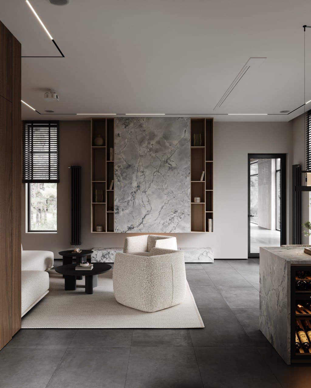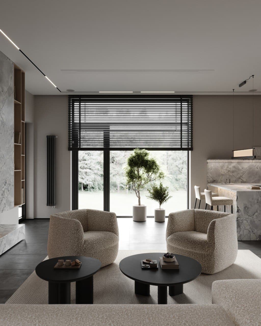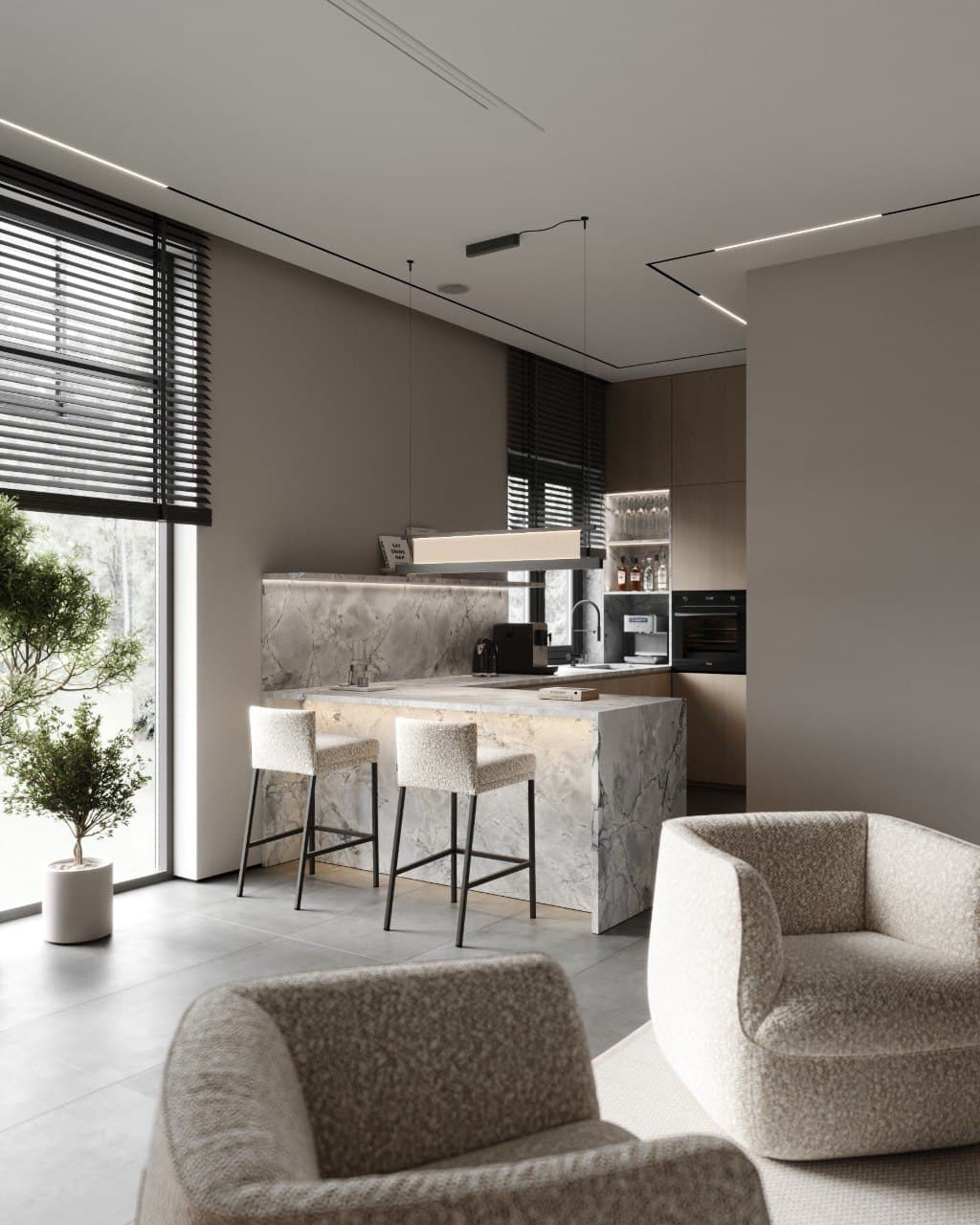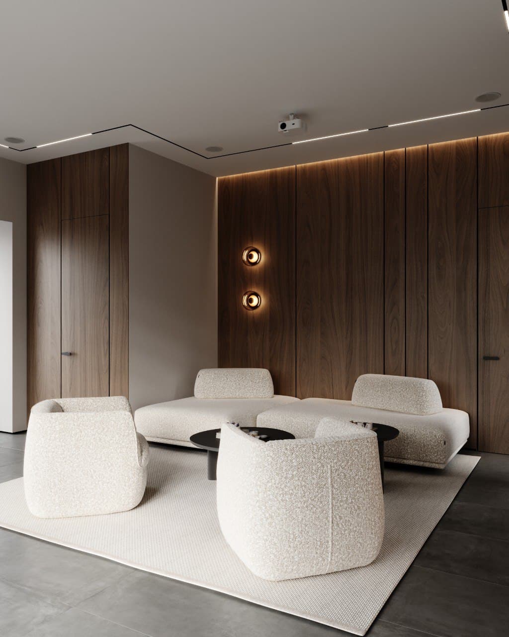 - Relaxation areas with comfortable furniture;