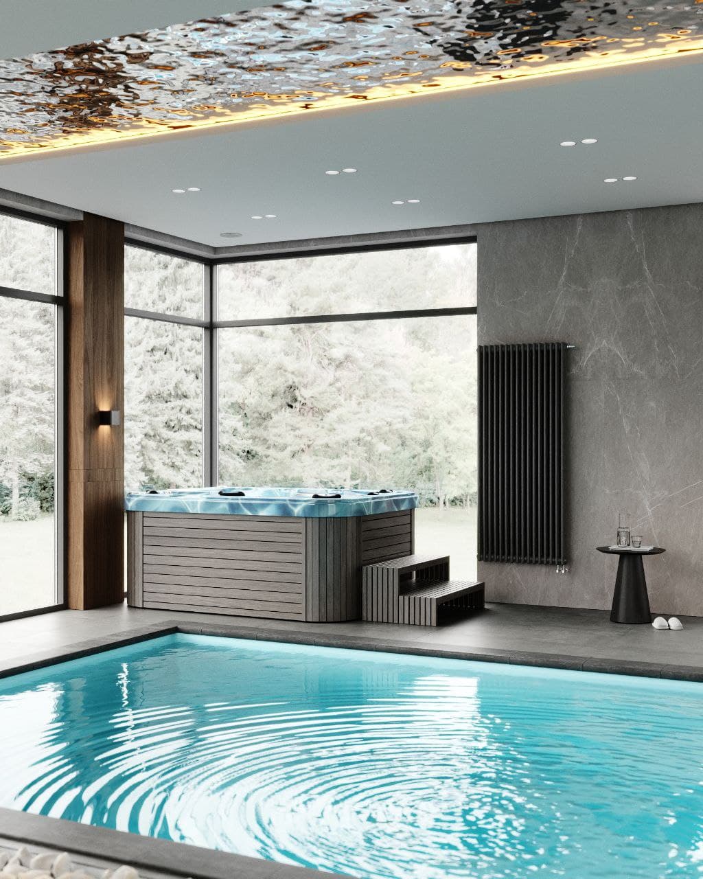 Ice baths, used for contrast therapy, are excellent for recovery after hot treatments. Spa pools and hot tubs not only relax but also contribute to pleasant rest, uplift the mood, and create ideal conditions for recuperation. Their design must consider convenient placement and the best possible interaction with other spa zones. - Immersive Sensory Shower