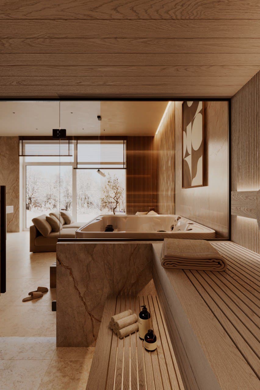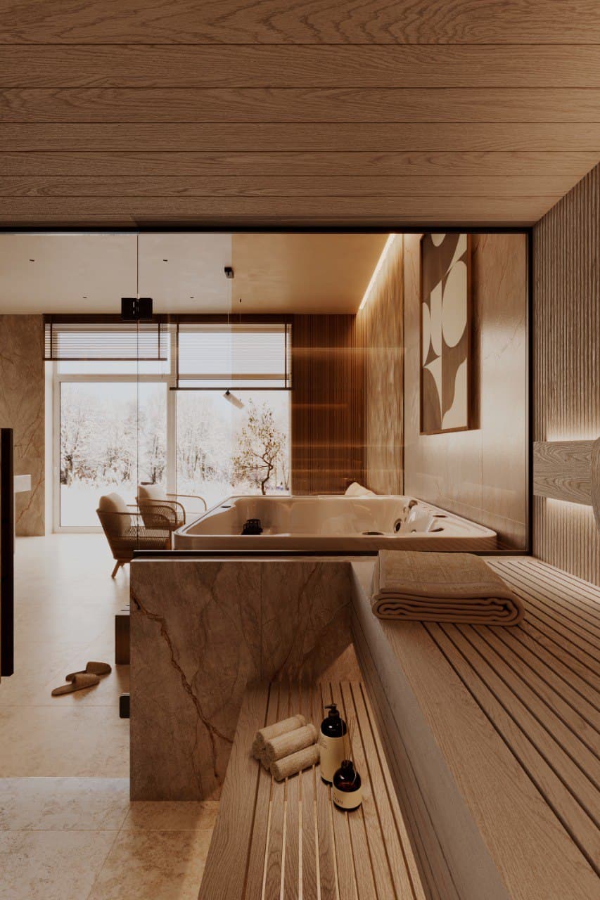 Every spa complex project must consider the style and architectural features of the house itself. The use of natural materials, harmony with the surrounding nature, and the creation of a relaxing atmosphere are key aspects of a successful project. Designers and architects work in close cooperation to ensure not only aesthetic appeal but also the functionality of all rooms.